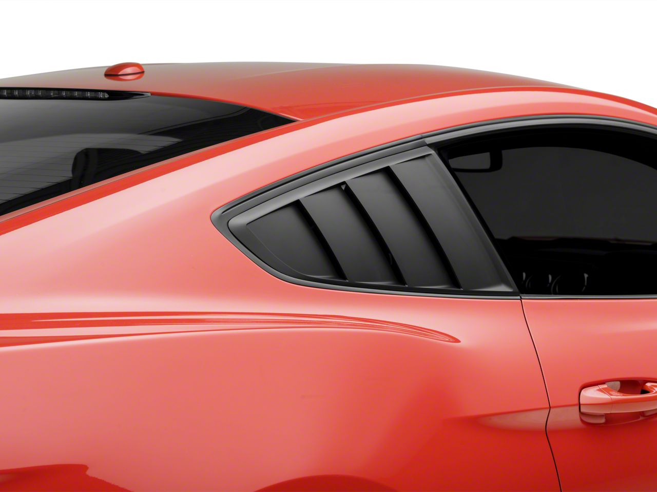 Recommended Styling Upgrade. When installing exterior quarter window louvers or scoops on your Mustang, it is recommended to add a set of quarter window blackout decals to hide the ugly back side that wasn't meant to be seen by human eyes. See part number 386505.