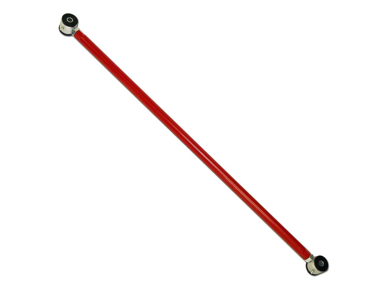 Durable Construction. Like all J&M products, this J&M Adjustable Aluminum Panhard Bar is created of high-quality material. They craft it from billet aluminum alloy, giving you a sturdy piece of equipment and follow it up with an aesthetically-pleasing red powder-coat finish