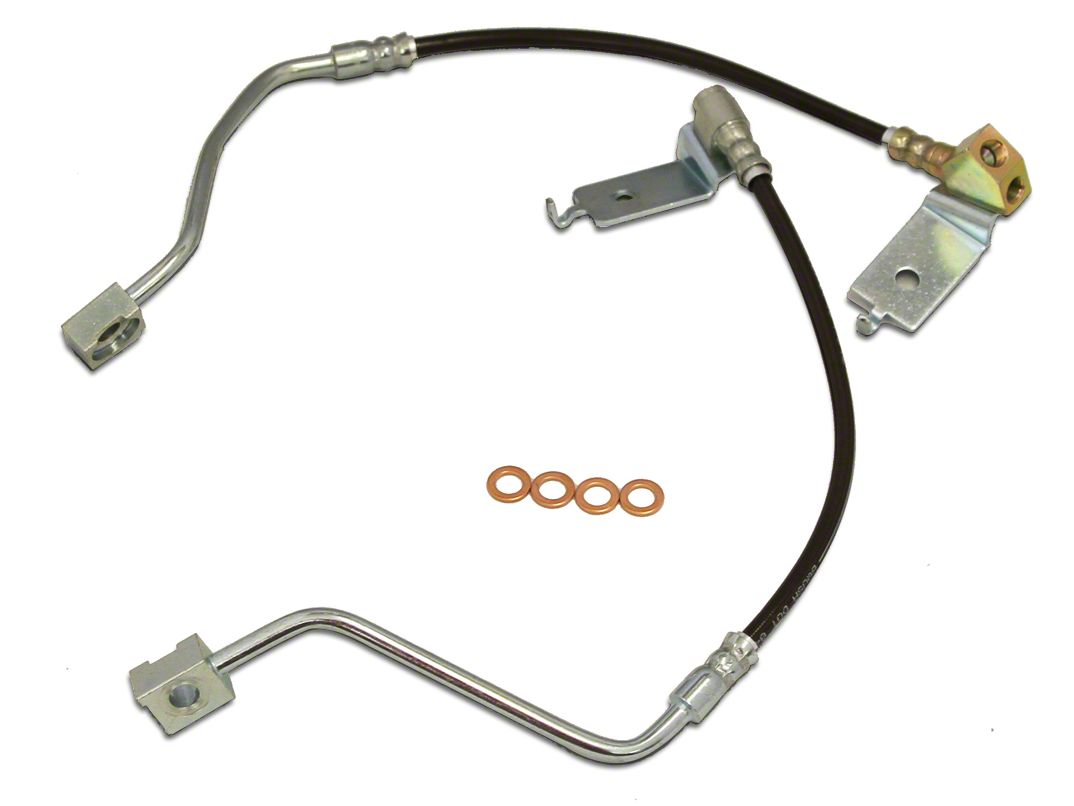 Essential Upgrade. Rubber hoses naturally expand, giving your brakes a mushy feel with reduced braking force. The J&M Clear Outer Coating Stainless Steel Teflon Rear Brake Lines have the flexibility of a rubber hose, while the rigid construction delivers a firmer pedal feel, faster braking response and better brake modulation. Leak resistance means less water in your brake fluid and uncompromised performance. These Brake Lines are designed to operate at high temperatures for a longer life.