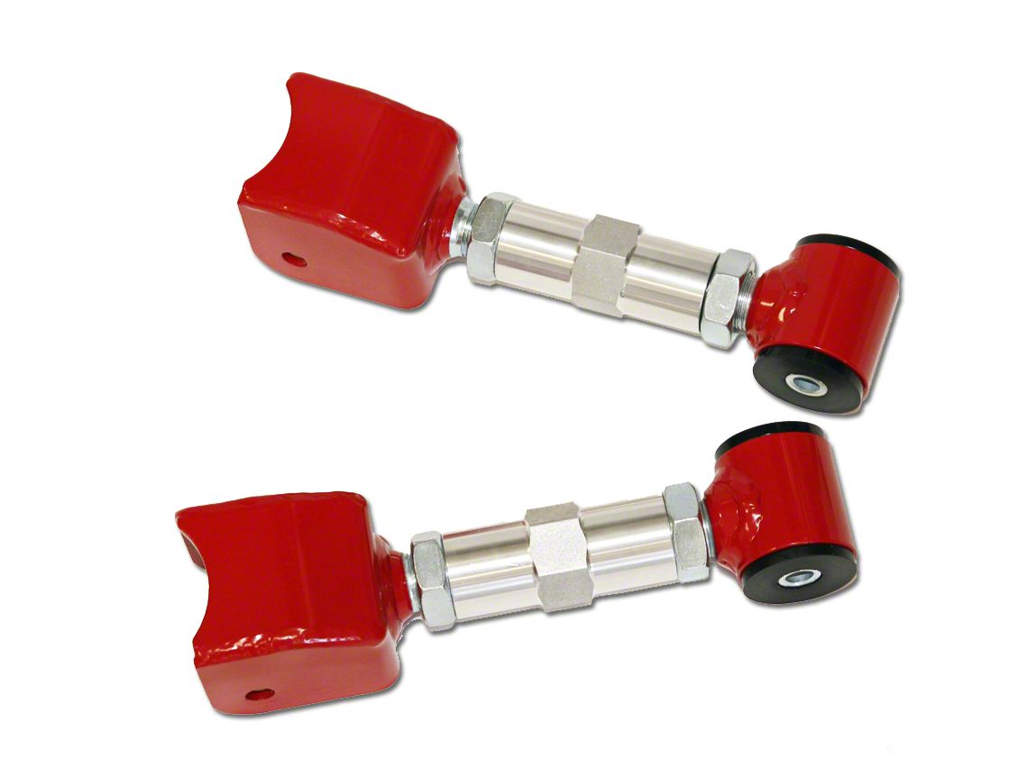 Application. The J&M Red Double Adjustable Rear Upper Control Arms fit any Mustang from 1979 to 2004, excluding the Cobra from 1999 to 2004.