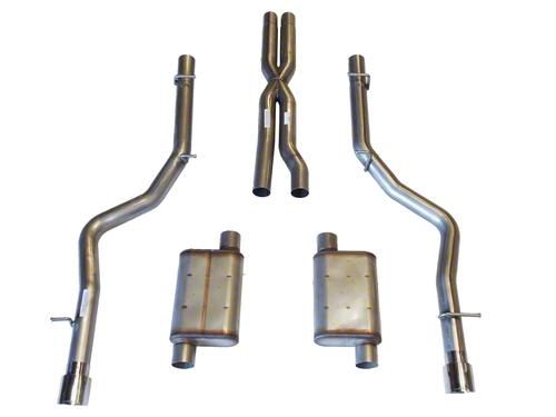 Head-Turning Exhaust Sound. This JBA Cat-Back Exhaust with Polished Tips offers an aggressive and loud exhaust note. Thanks to its 2 turbo mufflers, X-pipe, and free-flowing tubing design, this cat-back exhaust is capable of converting your car’s meek exhaust sound to a more head-turning roar.