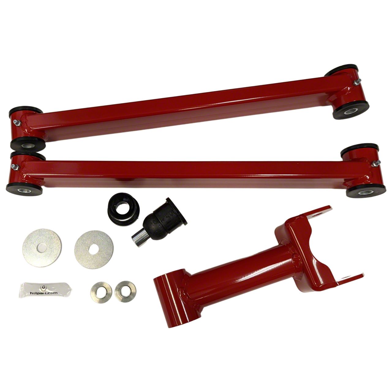 Superior Construction. To prevent breakage, these upper and lower control arms are built from 1 x 2-inch high-strength material with 0.120-inch wall thickness. These components are also applied with a red powder-coat finish to protect them from corrosion.