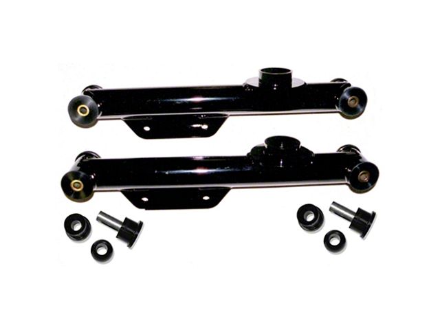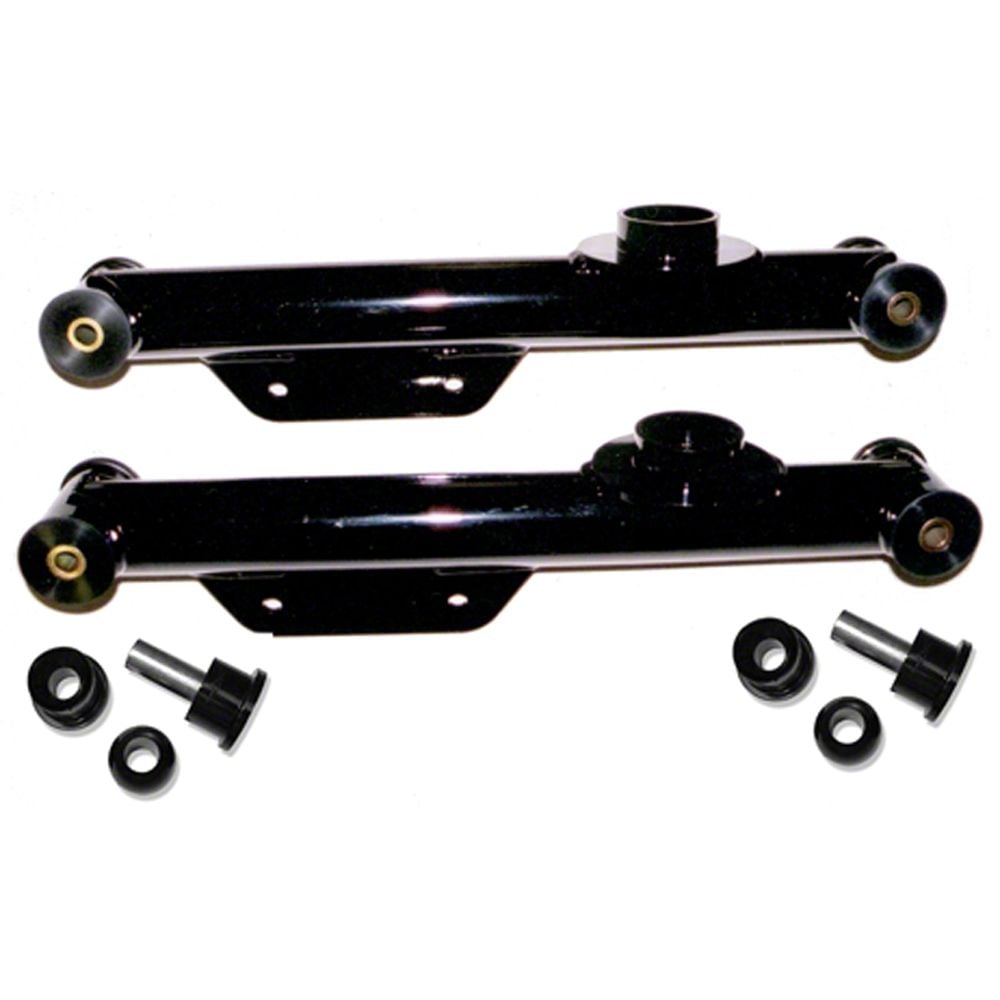 Robust Build Quality. These rear lower control arms are made from high-quality tubular steel with a diameter of 2 inches, making them extremely robust. Furthermore, these lower control arms are CNC laser cut and pulse welded for added rigidity. Meanwhile, their ball bushings are molded to tight tolerances from specially formulated polyurethane for an exact fit when installed. Finally, these control arm assemblies are finished in a wear-resistant red powder coating, providing outstanding corrosion protection and an eye-catching style.