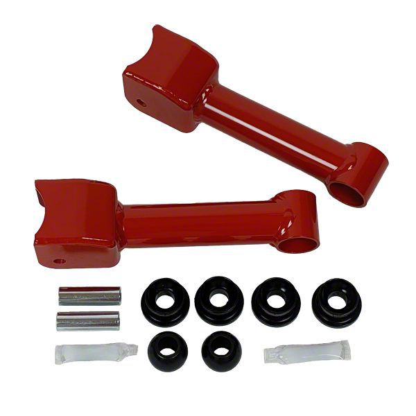 Hardwearing Build Quality. These rear upper control arms are constructed from thick-walled tubular steel for superior strength. These steel tubes are then precision-cut and machined before undergoing a specialized pulse welding technique to improve rigidity. The ball bushings for their part are molded from premium polyurethane, offering exceptional resistance to wear and deterioration. Lastly, these control arms receive a rugged red powder coat finish for exceptional corrosion protection and bold looks.