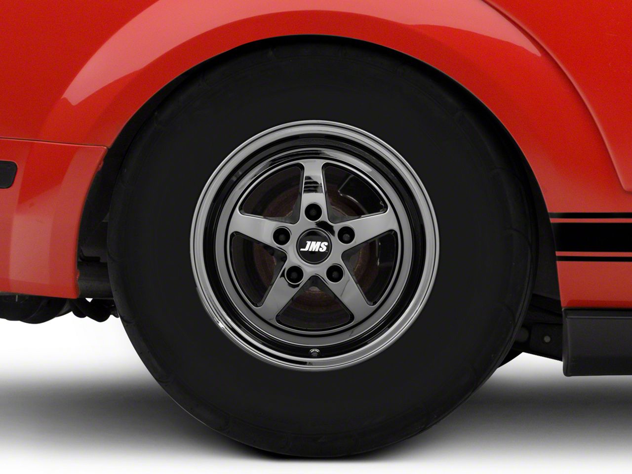 Application. This JMS Avenger Series Black Chrome Wheel; Rear Only; 15x10, with a backspacing of 7.233 Inch, 183.8mm; and bolt pattern of 5 x 114.3mm (5 x 4.5-Inch), provides enhanced alignment and stability. Designed to fit the 2005-2009 Mustang models, it offers precise fitment and is sold individually.