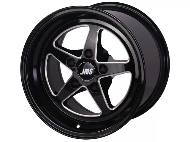 JMS Avenger Series Gloss Black Machined Wheel; Front Only; 17x4.5. The JMS Avenger Series Gloss Black Machined Wheel offers a striking balance of style and refinement. Its unique design accentuates the vehicle's aesthetic, while the premium construction underscores its robust nature. This wheel is a perfect choice for those seeking both elegance and a strong visual statement.