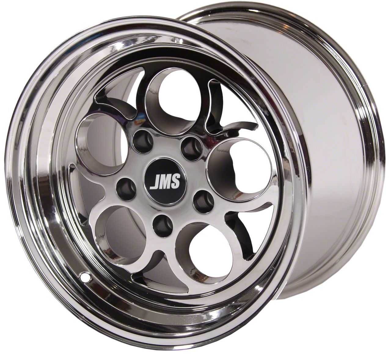 This 17x4.5 JMS Savage Series White Chrome Wheel is completed in a 3-step process - copper, nickel and finally chrome.
