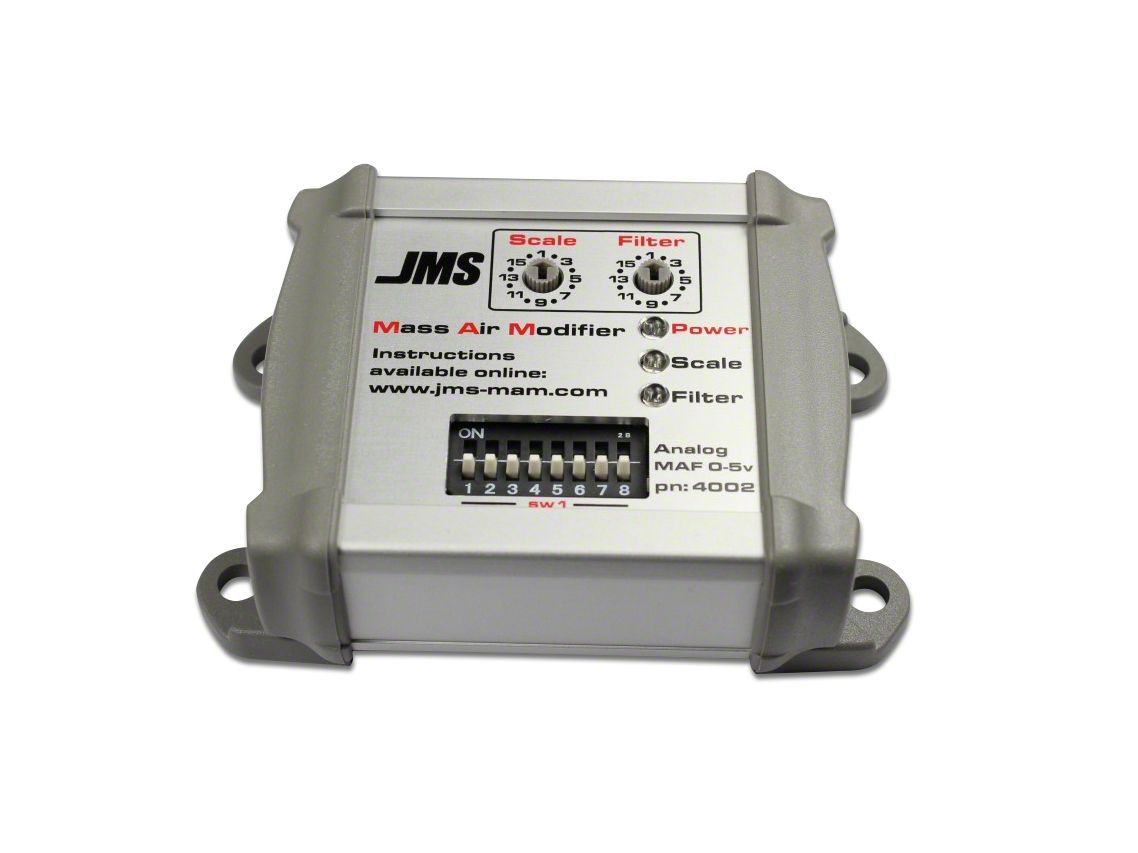 Get Accurate Setting. This JMS Digital Mass Air Modifier filters the mass air signal in your vehicle, which greatly improve the cruising and idling performance of your engine. Scale and filter the mass air signal in real time on the dyno to save time and provide accurate settings.