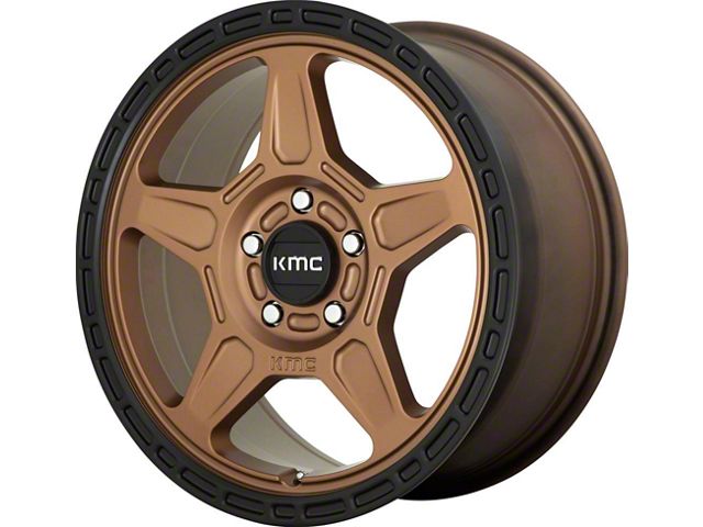 KMC Alpine Matte Bronze with Black Lip Wheel; 18x8 offers a striking balance between style and durability. The design speaks to the brand's commitment to quality, enhancing the vehicle's appearance with its distinct look. This wheel, with its unique aesthetics, is ideal for drivers who appreciate a blend of modern design and robust functionality.