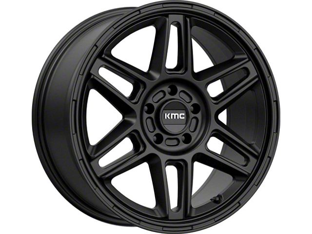 KMC Nomad Satin Black Wheel; 18x8. The KMC Nomad Satin Black Wheel offers a striking balance of style and refinement. Its unique design accentuates the vehicle's aesthetic, while the premium construction underscores its robust nature. This wheel is a perfect choice for those seeking both elegance and a strong visual statement.