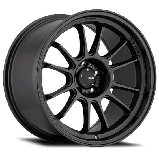 The 18x12 Konig Hypergram Matte Black Wheel; Rear Only; 18x12; 20mm Offset is completed in a matte black finish that will make everyone green with envy. For added protection and good looks, this wheel features a durable clear coat that is tough enough to stand up against the hazards of everyday driving.
