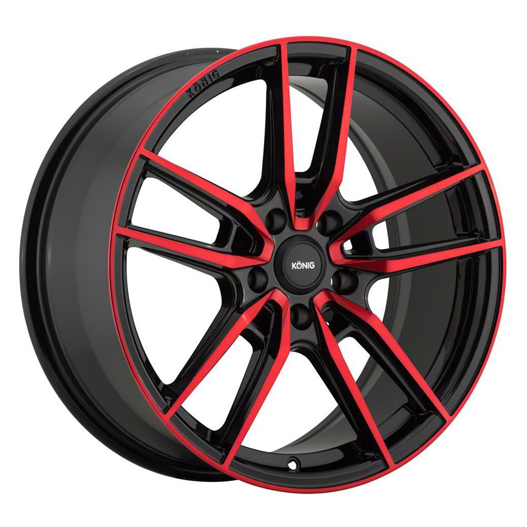 The 18x8 Konig Myth Gloss Black with Red Tint Wheel is painted in a stunning black hue, this wheel features candy red accents for an impressive head-turning presentation.