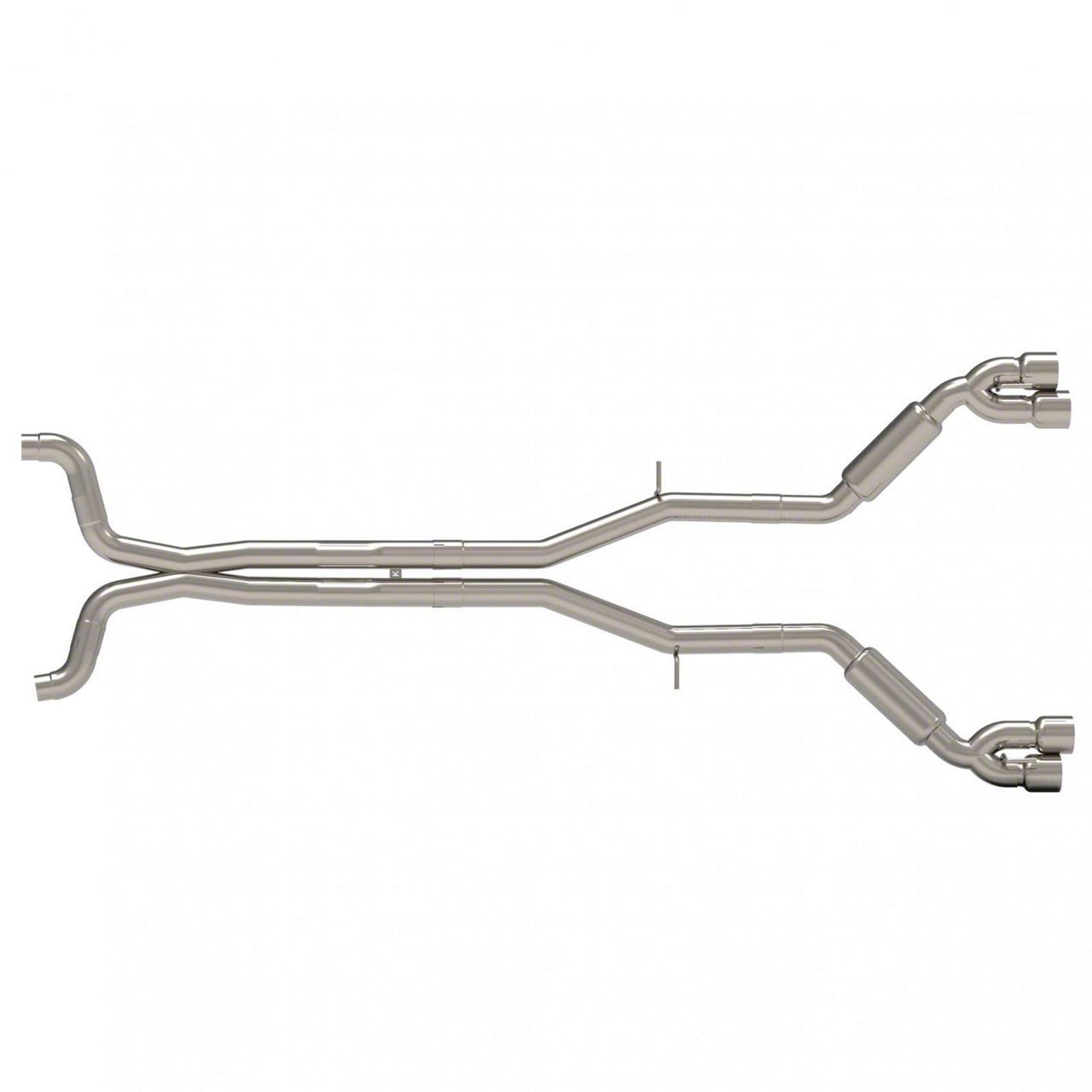 Stainless Steel Construction. This Kook's Connection-Back Exhaust System is proudly manufactured in the USA from 3-inch diameter, mandrel-bent, aircraft quality T-304 stainless steel tubing for excellent exhaust flow and corrosion resistance. Besides the included crossover X-pipe, this system features a pair of Kooks bullet race mufflers that end with quad, 4-inch, polished stainless steel exhaust tips.