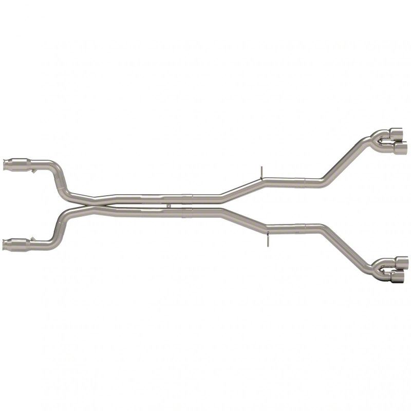 Stainless Steel Construction. This Kook's Header-Back Exhaust System is proudly manufactured in the USA from 3-inch diameter, mandrel-bent, aircraft quality T-304 stainless steel tubing for excellent exhaust flow and corrosion resistance. Besides the included catalytic converters and crossover X-pipe, this system features a pair of quad, 4-inch, polished stainless steel exhaust tips.
