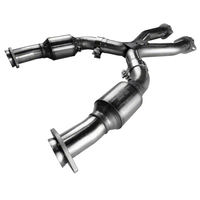 Horsepower and Torque Enhancer. The Kooks 2-1/2-Inch Catted X-Pipe is designed to enhance your Mustang's exhaust flow, delivering increased horsepower, torque, and a more aggressive exhaust tone. Specifically engineered for use with Kooks Long Tube Headers, this X-pipe optimizes performance while maintaining emissions compliance. With vehicle-specific properties, it ensures a perfect fit and seamless integration into your exhaust system.