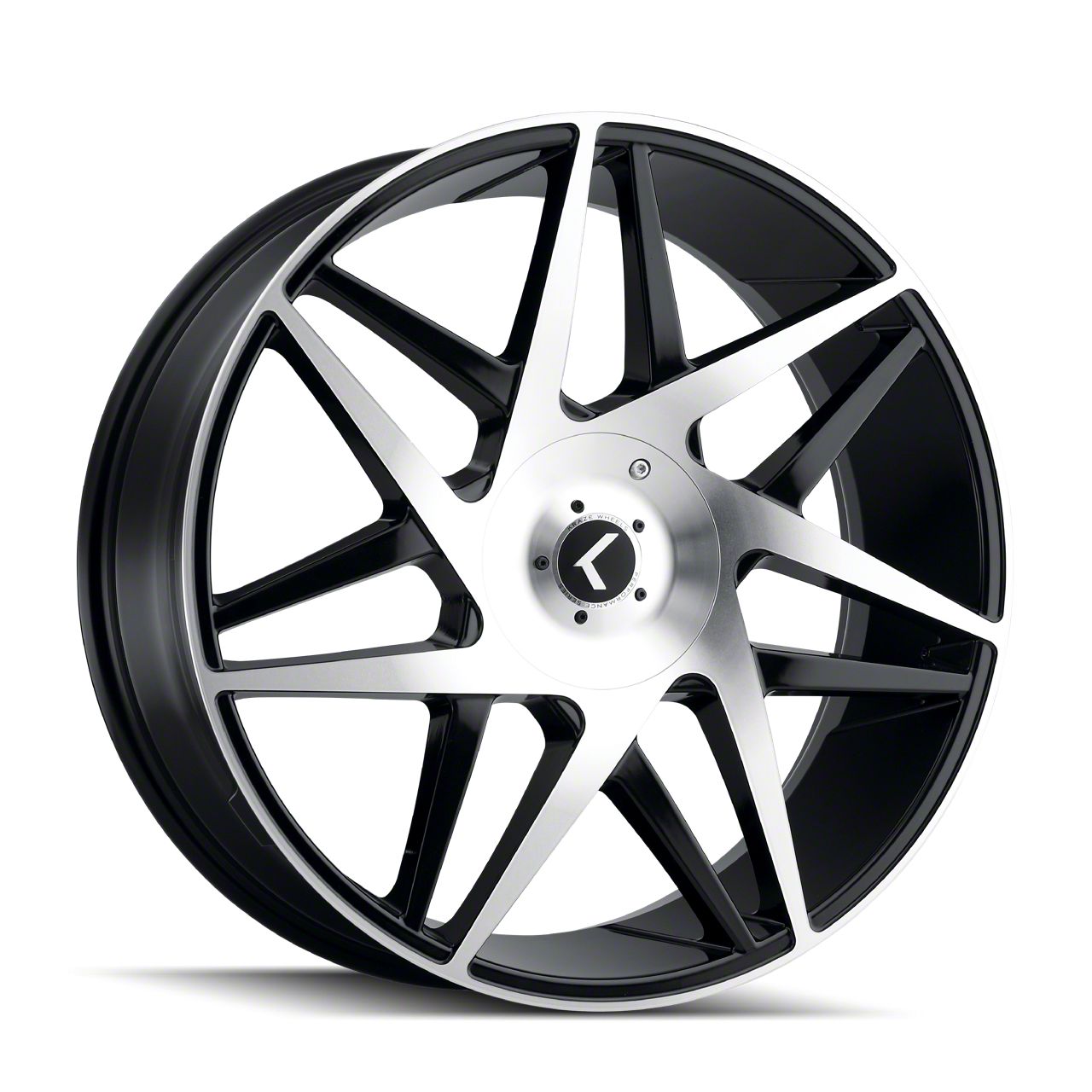 Kraze Phase Gloss Black Machined Wheel; 22x8.5 is a visually striking choice, offering a combination of rugged durability and modern styling. Its design complements off-road and sporty vehicles alike, enhancing the overall aesthetic appeal.