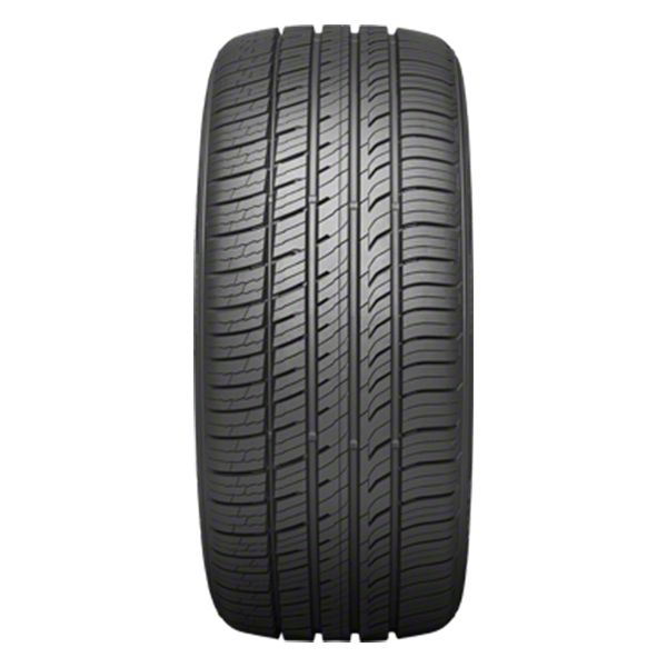 Construction and Appearance. Featuring a matte black finish, the Kumho Ecsta PA51 Tire has an asymmetrical tread design with full-depth sipes to improve traction on both dry and wet surfaces. The strong central rib and rigid outside shoulder deliver enhanced stability and traction in tight corners, while the wide, balanced footprint promotes even wear and a longer tread life. The variable pitch tread design also reduces road noise, offering a quieter and more comfortable ride.
