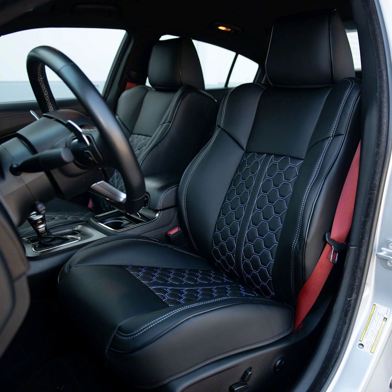 Application. These Kustom Interior Premium Artificial Leather Front Seat Covers; All Black With Honeycomb Accent are designed to fit12015-2023 Charger Scat Pack and SRT with Performance Seats; 2019-2023 Charger R/T with Performance Seats.