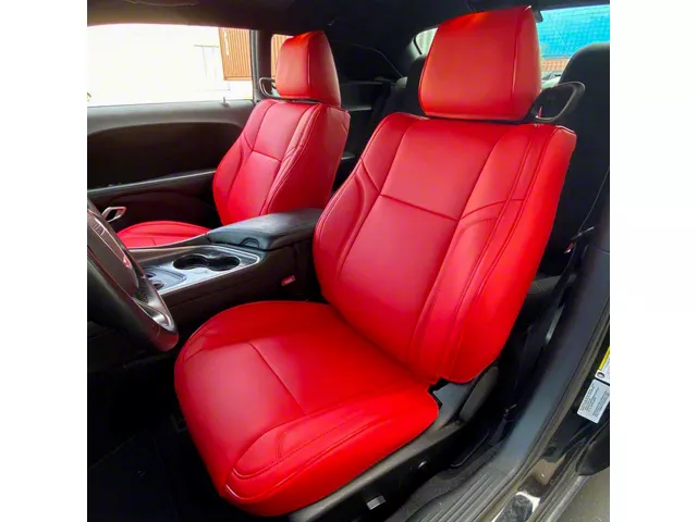 Protective Covers. Made to protect your Dodge Challenger’s stock leather upholstery, this Kustom Interiors Premium Artificial Leather Front and Rear Seat Covers comes in a bright red finish with waterproofing. This kit has a slide-on design and has separatable side seams for airbag deployment for additional levels of safety during accidents.