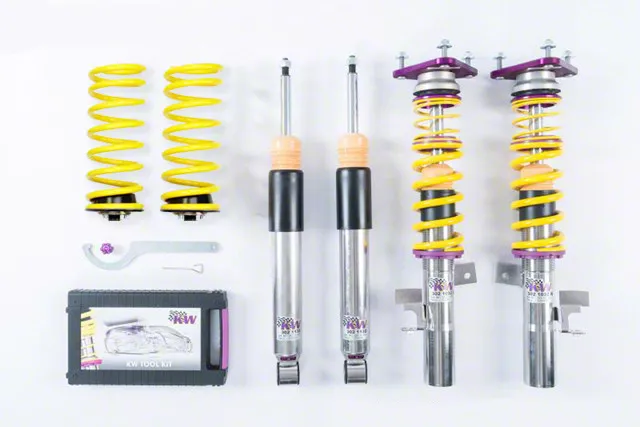 Long-Lasting Materials. Constructed using Inox-line stainless steel, these coil-overs are designed for years of unrivaled service. The yellow powder-coated springs and purple anodized aluminum components give these coil-overs that distinct KW Suspension looks and guarantee long-lasting performance.