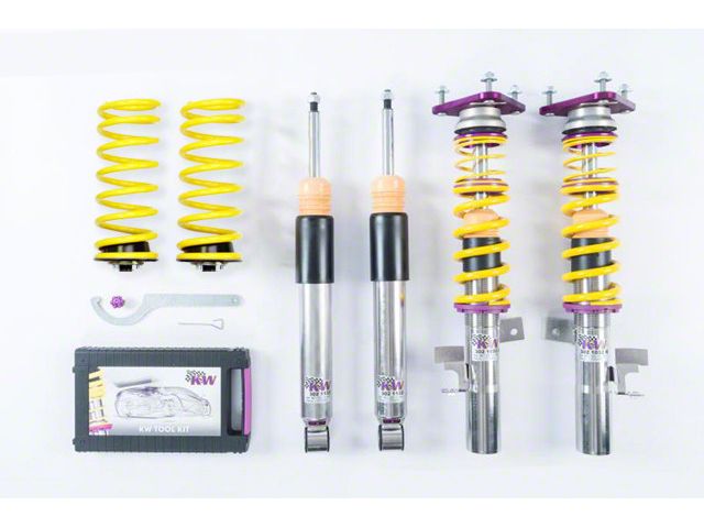 Dialed-In Suspension. The KW Suspension 2-Way Clubsport Coil-Over Kit for the Mustang with its infinite adjustment options lets you fine-tune your setup according to vehicle characteristics, tire type, and driving conditions. With independently adjustable 12-click compression and 16-click rebound settings, you are sure to get the most performance out of your car’s suspension.