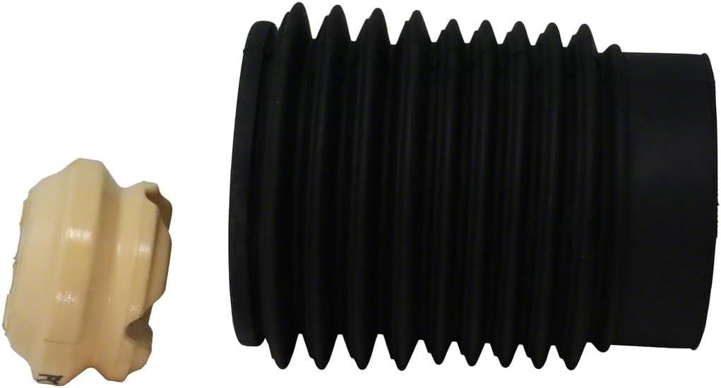 Construction and Appearance. This KYB kit includes a durable, high-density polyurethane jounce bumper and a molded bellows-style dust boot. The materials are engineered to withstand extreme road conditions and high stress. The finish features a matte black bellow with a light beige jounce bumper, ensuring both functionality and OE-style appearance.