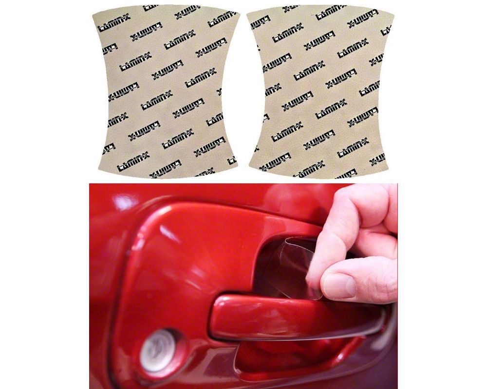 Door Handle Cup Protection. Scratches and scuffs underneath your door handle are unsightly and hard to ignore. Protect the paint on the inside area of your door handles with the Lamin-X Door Handle Cup Paint Protection Film. This kit consists of pre-cut protection films that are made following the specifications of your vehicle to guarantee a perfect fit. Their scratch-resistant surface ensures your door handle cup will be free from any scrapes or scuffs despite frequent use.