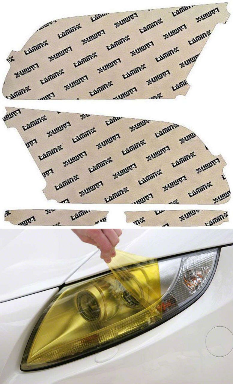 Description. A Lamin-x custom cut kit for your Ford Mustang (2013-2014) is designed to give your car a one-of-a-kind combination of style and protection on its headlights. Our film is designed to be installed on your Ford with minimal trimming.This headlight kit is available in 5 colors: Clear, Tint, Gunsmoke, Yellow, and Blue. Choose the best color to fit your style or install our Clear film to keep your Ford lights looking brand new. Check out our headlight color gallery to see examples of our headlight tint film.