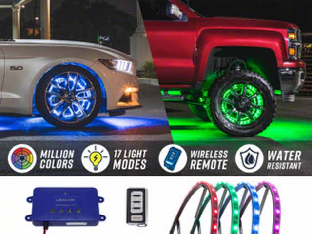 Construction and Appearance. Designed to be both durable and visually striking, the LEDGlow Million Color Wheel Ring Lighting Kit is water-resistant, ensuring reliable performance in various weather conditions. The high-quality construction ensures longevity and durability, while the stylish design adds a modern touch to your vehicle. The kit includes a wireless remote, allowing you to easily switch between light modes and adjust settings from a distance, providing convenience and ease of use.