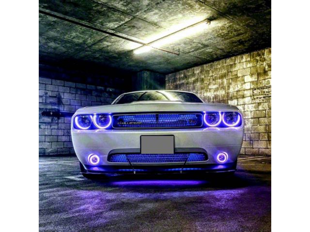 Construction and Appearance. Engineered for both performance and style, the Lighting Trendz Flow Series Headlight Halo Kit is built to impress. The waterproof design guarantees that your lighting remains vibrant and functional in all weather conditions, protecting your investment against the elements. The full-color functionality, paired with the chasing colors design, provides an endless array of lighting options, allowing for complete customization of your vehicle’s appearance. This kit not only enhances visibility but also elevates the Challenger's aesthetic, making it stand out in any scenario.