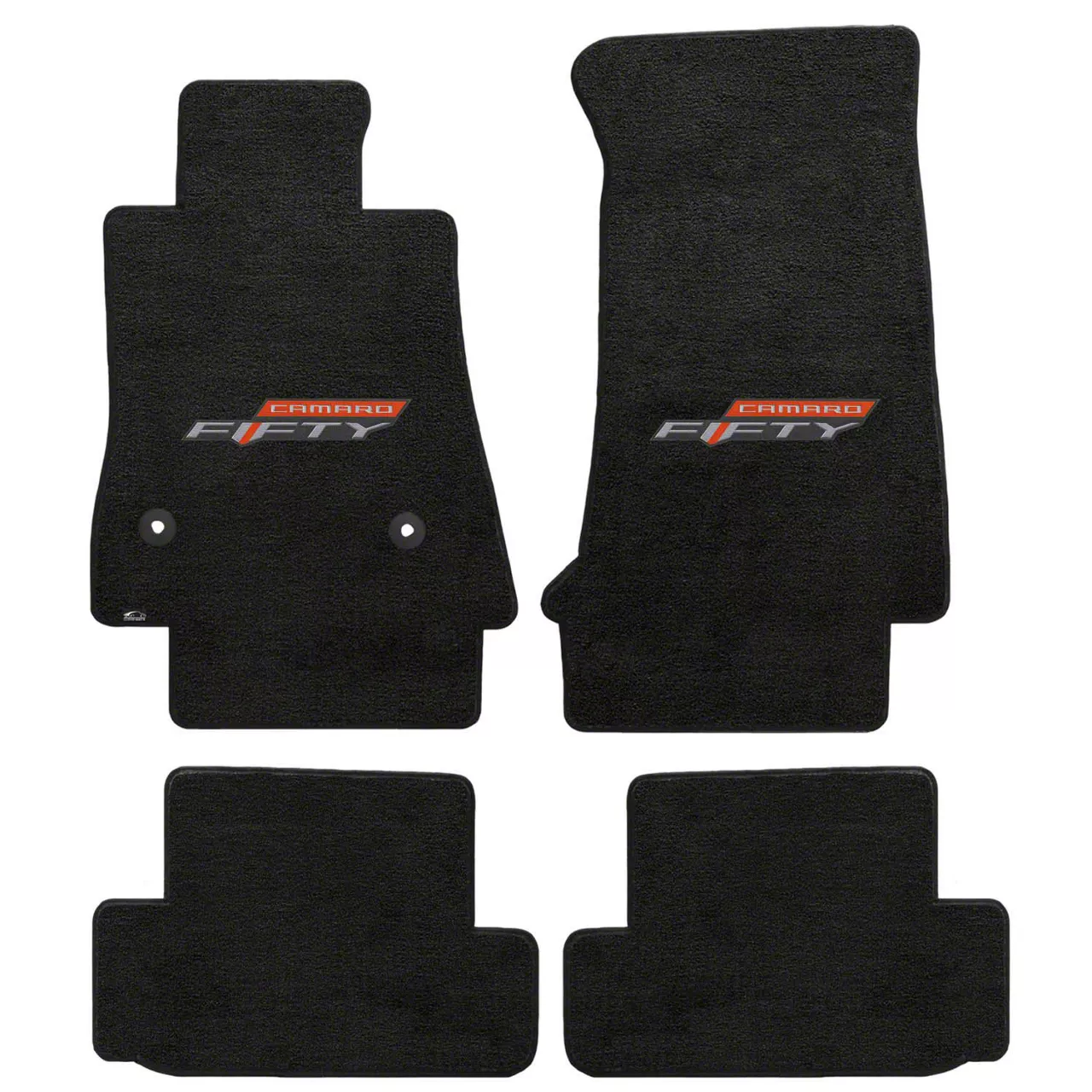 Application. The Lloyd Velourtex Front and Rear Floor Mats with 50th Anniversary Logo; Black are designed to fit all 2016-2024 Chevrolet Camaro models.