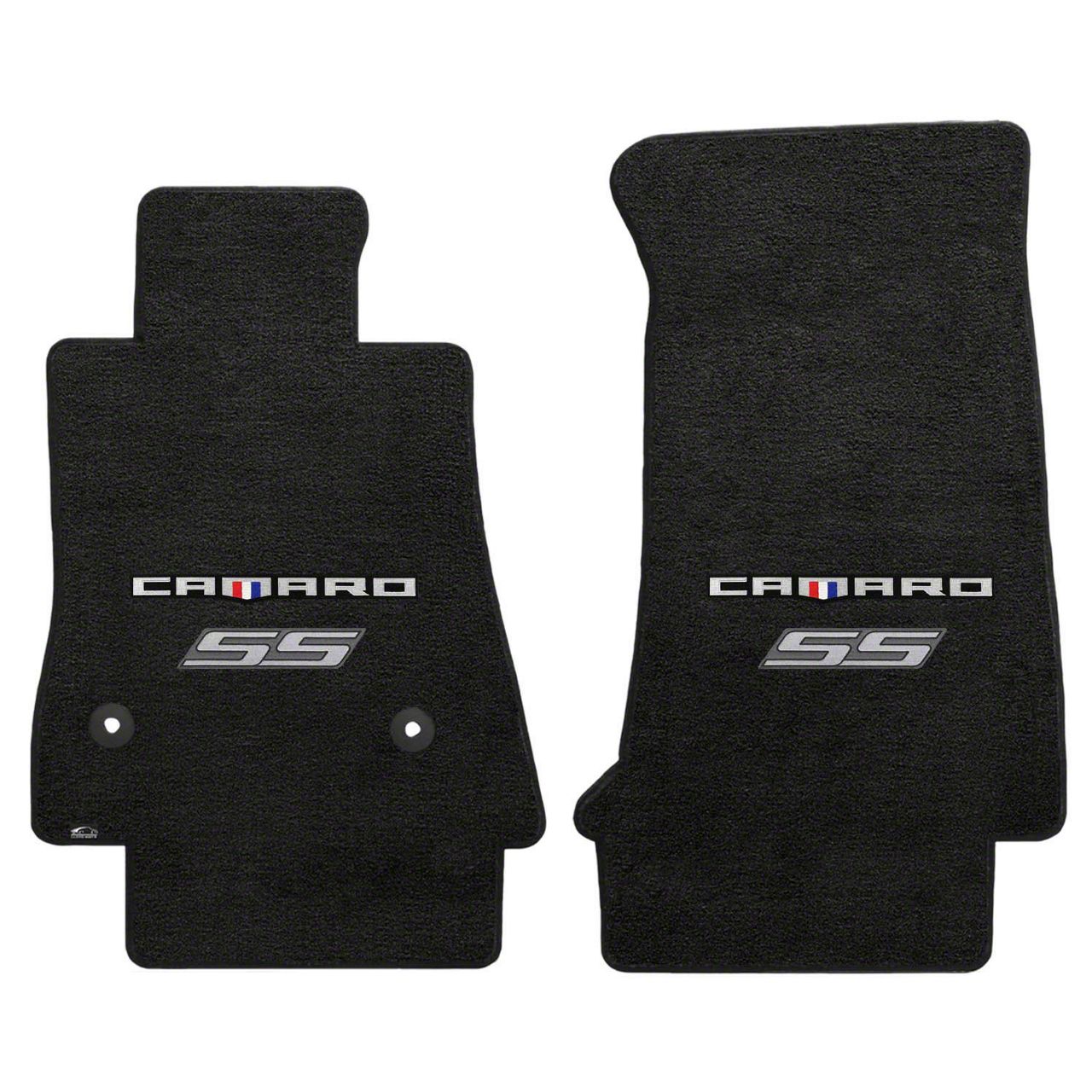 Ebony Custom Front Floor Mats. Keep your floors from getting blasted by mud, sludge, and debris with the Lloyd Velourtex Front Floor Mats with Camaro and Silver SS Logo; Black. These front floor mats come with a premium nylon construction and anti-skid backing for a firm fit.