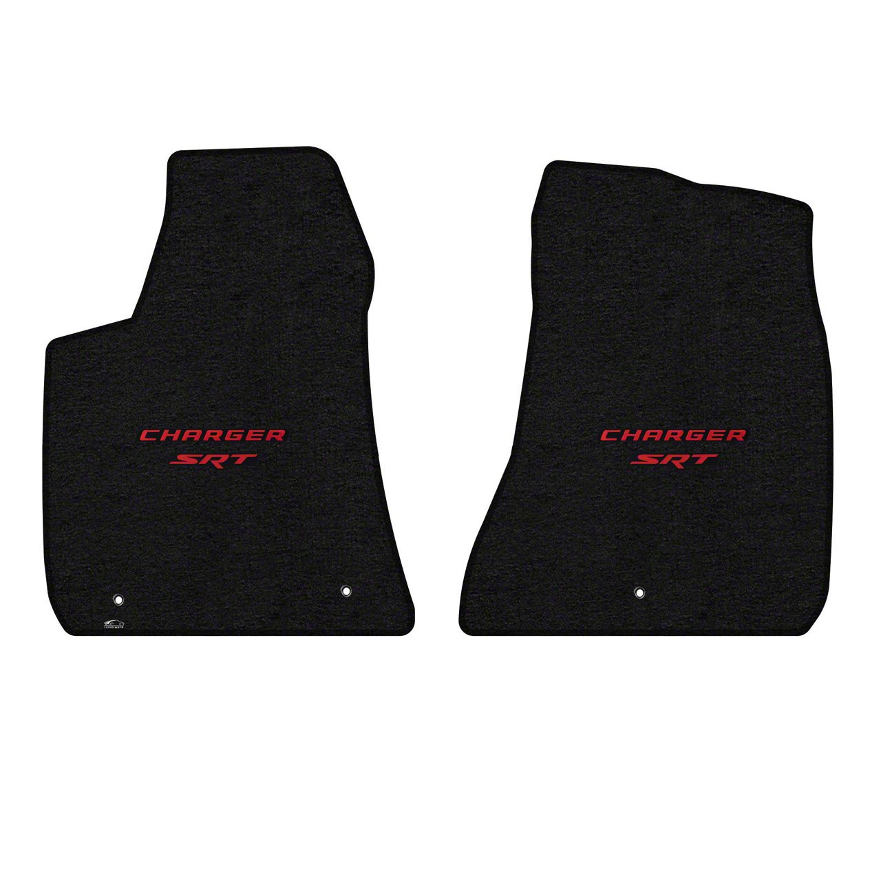 Custom Styling. Show your love for your Dodge Charger with these Black Lloyd Velourtex Floor Mats. Featuring the SRT logo embroidered in red on the front mats, these floor mats will not only protect your Charger's interior, but will also add a touch of customization to your ride.