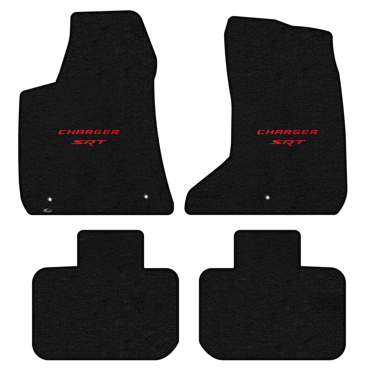 Custom Styling. Show your love for your Dodge Charger with these Black Lloyd Velourtex Floor Mats. Featuring the SRT logo embroidered in red on the front mats, these floor mats will not only protect your Charger's interior, but will also add a touch of customization to your ride.