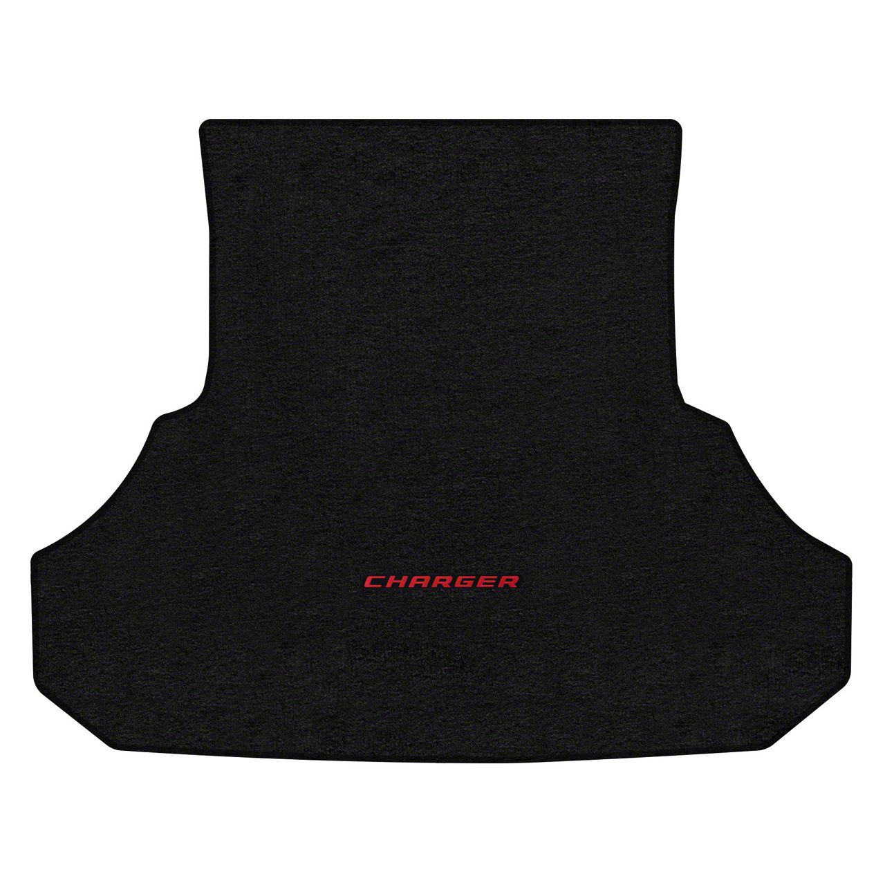 Application. This Black Lloyd Velourtex Trunk Mat with Red Charger Logo is engineered to fit 2013-2023 Dodge Charger models without subwoofers.