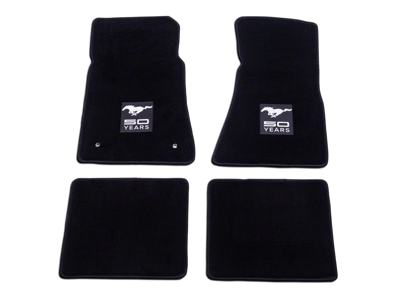 50th Anniversary Logo. Any serious Mustang fan can proudly display their love with these Lloyd Front and Rear Floor Mats with 50th Anniversary Logo. These thick ½” heavy plush floor mats prominently display the 50th Anniversary logo on a black field. Additionally, they’ll protect your Mustang’s carpet from dust, debris, and moisture. Furthermore, these floor mats are made from premium materials for a luxurious feel that will make you want to drive barefoot.