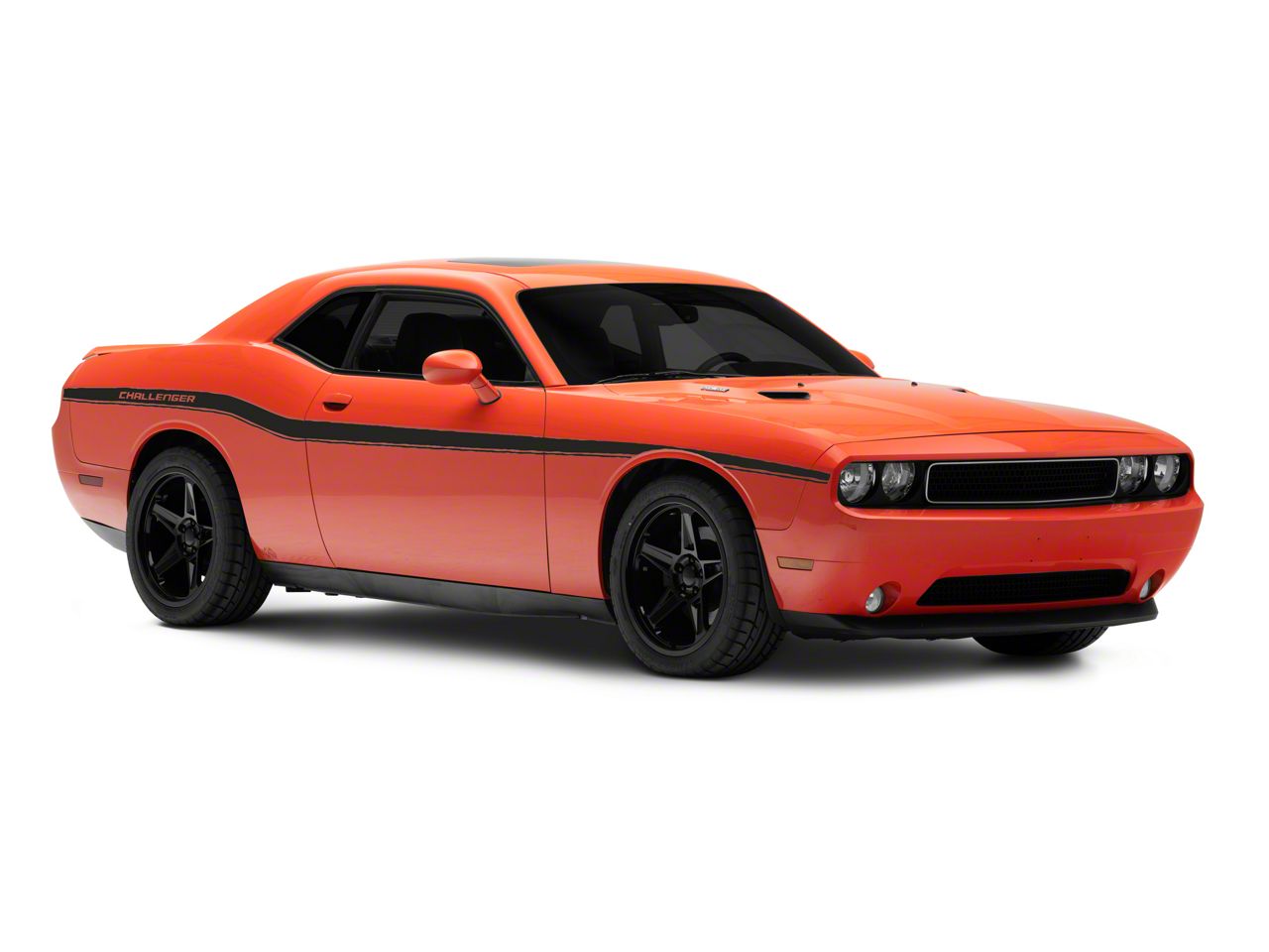 Application. These Officially Licensed MOPAR Lowerbelt Line Stripes with Challenger Block Logo; Matte Black are designed to fit 2008-2013 Dodge Challenger models. Driver and passenger side included.