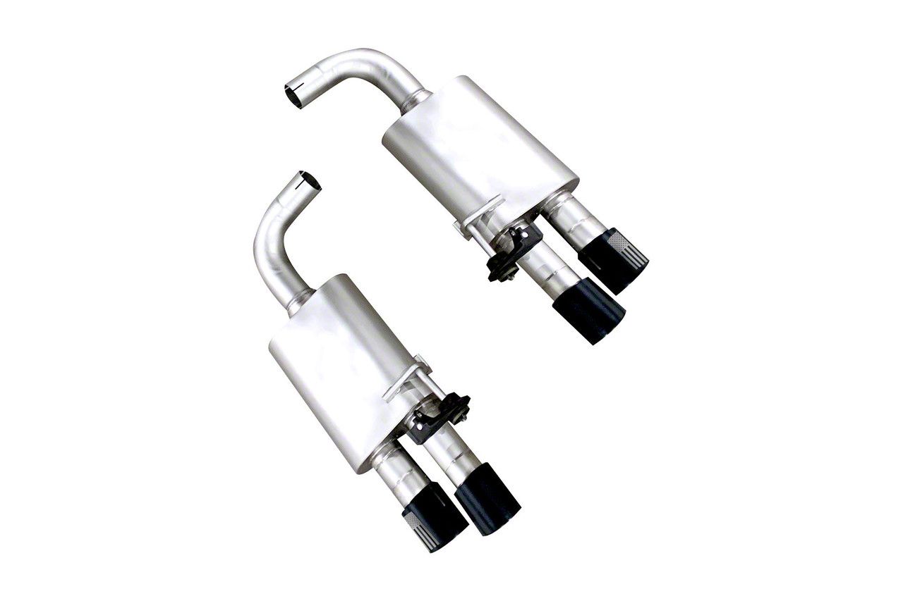 Custom Patriot Series Blackout Styling. Enhance the modern aesthetics of your S550 with the bold and stealthy LTH TruDual Axle-Back Exhaust with Patriot Series Black Tips. The oversized tips feature a specialized high-temperature black coating that provides a premium matte finish, creating a sleek contrast against any body color. Designed for 2018-2023 Mustang GT Models without Active Exhaust, these tips fill out the rear valance perfectly, offering a custom, aggressive look that is resistant to heat discoloration and environmental corrosion for long-lasting visual impact.
