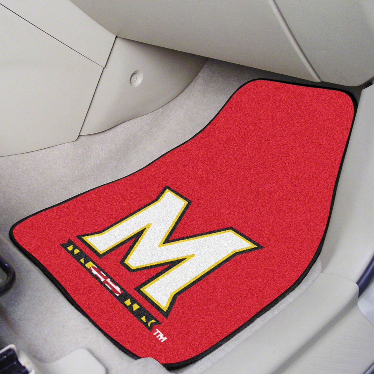 Description. Front Car Mats; 2-Pc Carpet Car Mat Set; University Of Maryland; 17"X27"