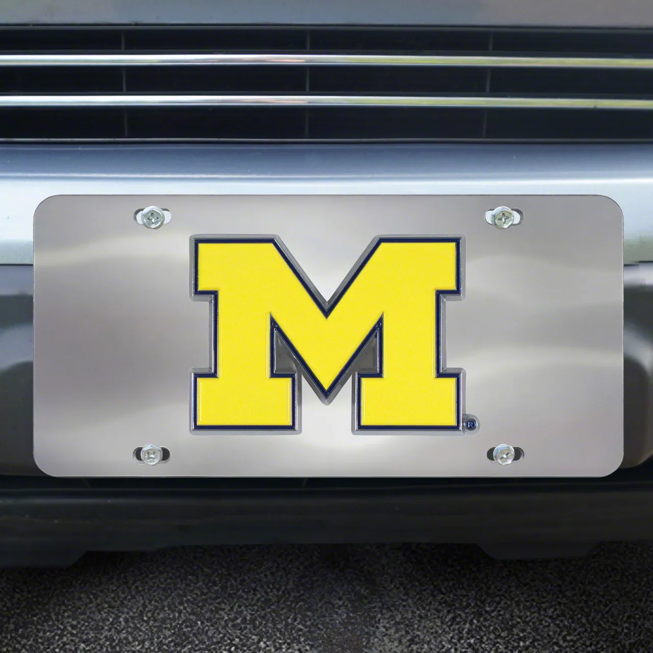 License Plate with University of Michigan Logo; Stainless Steel (Universal; Some Adaptation May Be Required)
