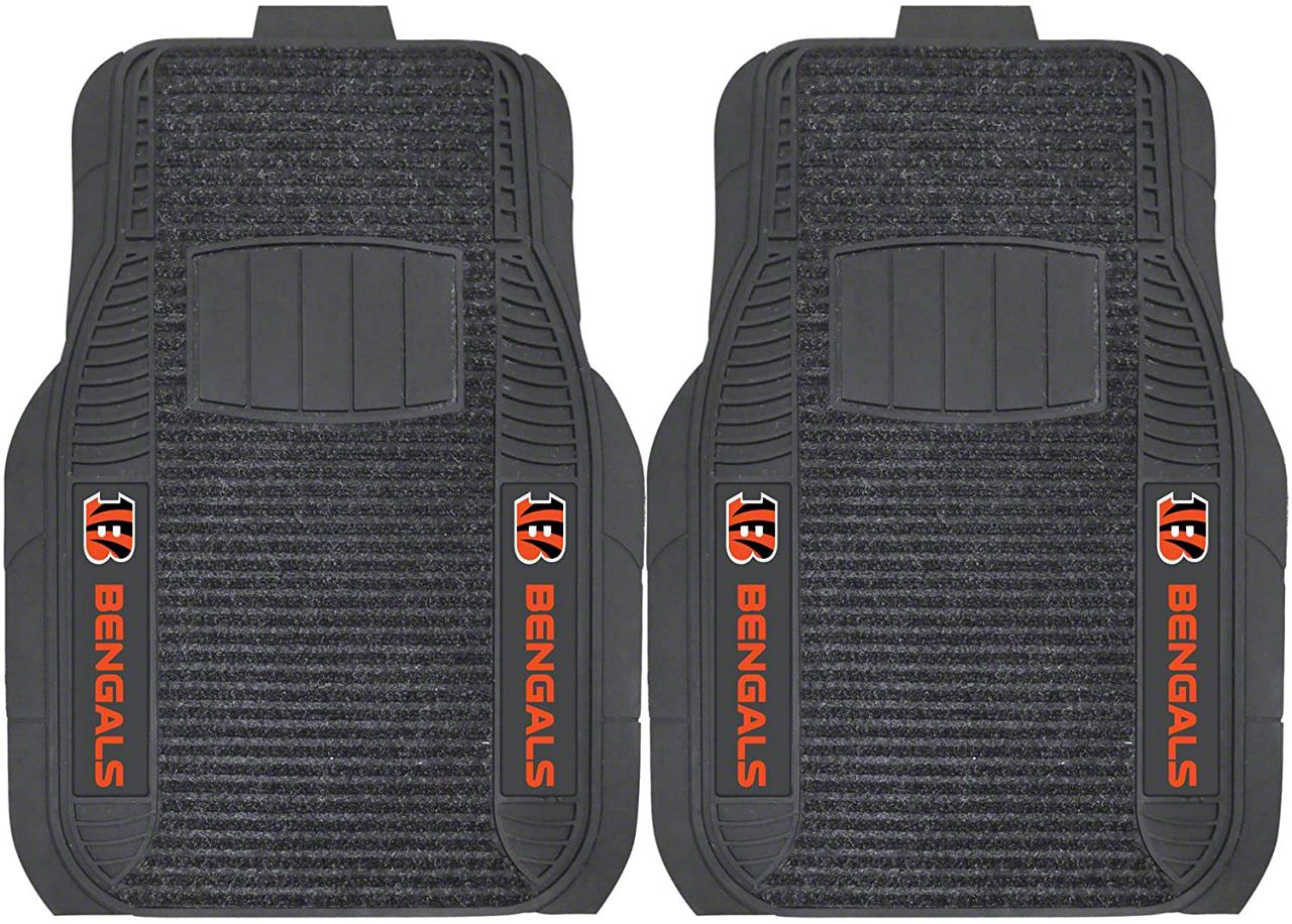Application. These Molded Front Floor Mats with officially-licensed Cincinnati Bengals logo feature a universal design so they will fit most makes and models of vehicles. These Mats can be trimmed to fit if necessary. Sold as a set of two Mats.