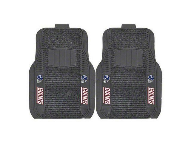 Application. These Molded Front Floor Mats with officially-licensed New York Giants logo feature a universal design so they will fit most makes and models of vehicles. These Mats can be trimmed to fit if necessary. Sold as a set of two Mats.