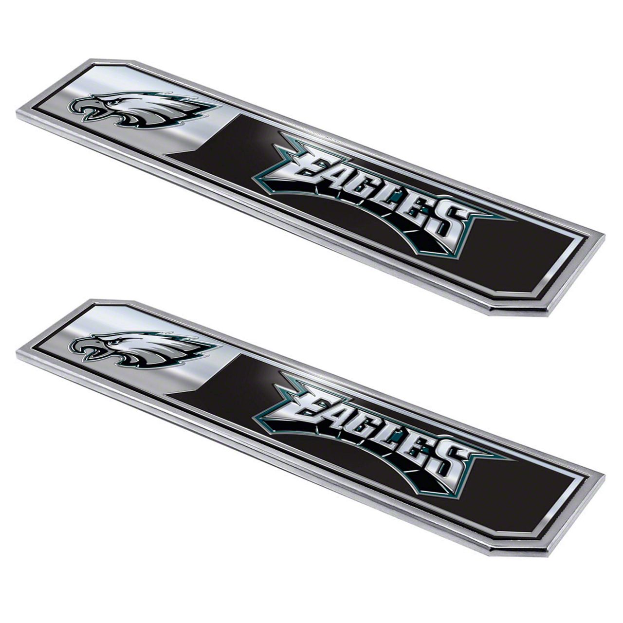 Eye-Catching Emblems. Show who your favorite team is in style with these Philadelphia Eagles Embossed Emblems in Black. They come with the Philadelphia Eagles logo that is embossed for an even more eye-catching effect than ever. These emblems also feature a black background that makes your truck look more rugged than before, making it stand out more easily anywhere you drive.