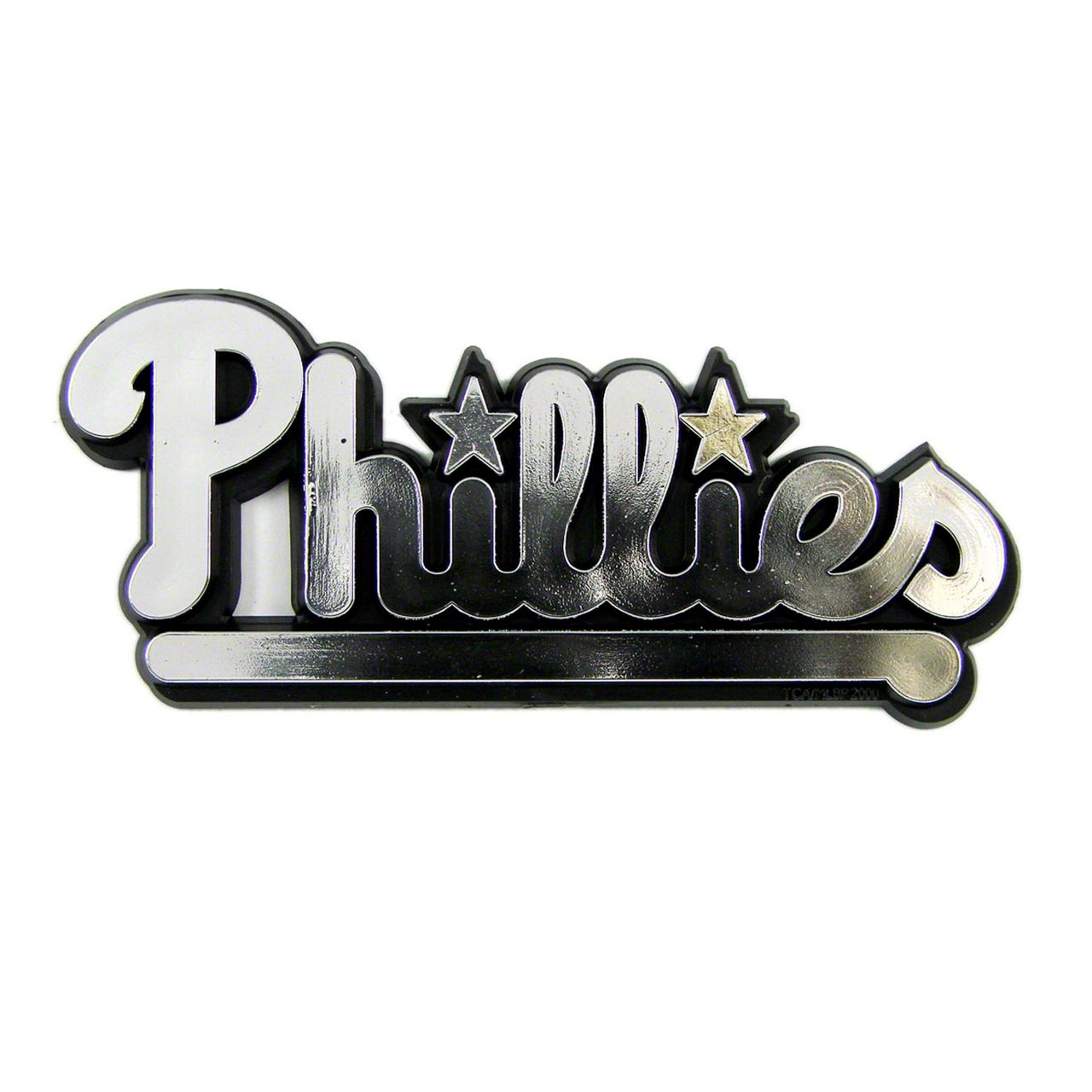 Stylish Team Pride. The Philadelphia Phillies Molded Emblem is a stylish way to showcase your team pride. Featuring a polished chrome finish and measuring 3.25x3.25 inches, this emblem is designed to make a bold statement. It displays the Major League Baseball logo, making it a perfect accessory for fans who want to support their team in style.