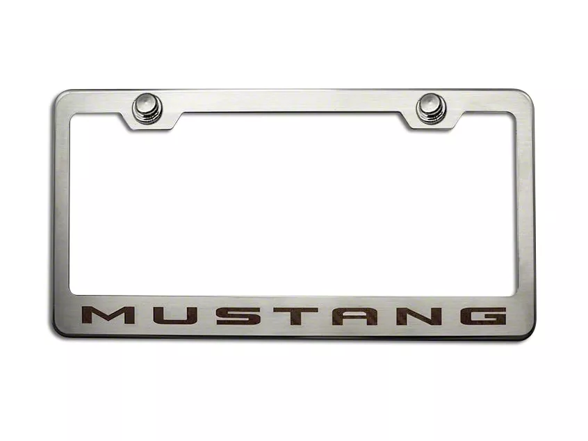 Cost-Efficient Accessory. Adding an eye-catching detail to the rear license plate of your Ford Mustang Mach-E is easy. This ACC Polished/Brushed License Plate Frame with Brushed Black 2010 Style Mustang Lettering is designed to add style to a plain license plate. It’s an affordable accessory that features polished/brushed finish and 2010-Style Mustang lettering. The text is in a brushed black color inlay that perfectly matches the luxury appeal of your vehicle.