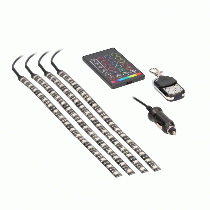 Dual Control System. Elevate your driving experience with our RGB LED Interior Kit, the perfect solution for adding a touch of style and functionality to your vehicle. One of the standout features of this kit is the music controller with a key fob and card remote. This allows you to easily control the lighting and create an immersive experience while driving. The RGB LED Interior Kit syncs up with your music, making it a great accessory for road trips and long drives. In addition to providing a unique and entertaining experience, it also enhances your vehicle's interior. With its customizable lighting options, you can create a personalized ambiance that reflects your personality and style.