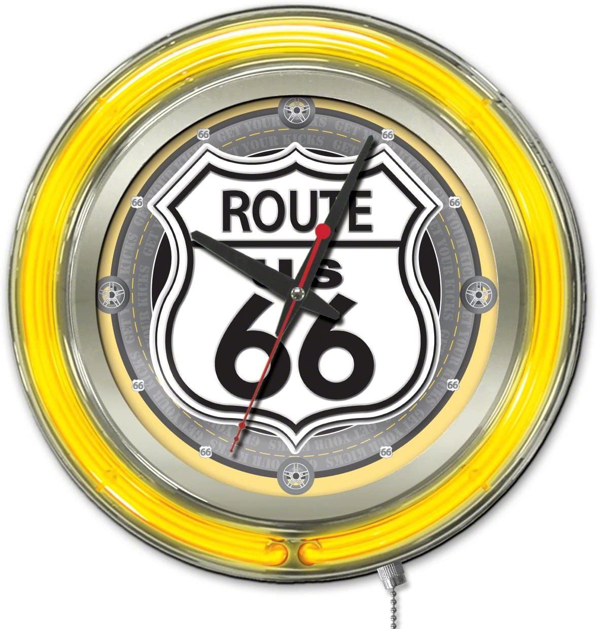 Description. Clock; Route 66 15-Inch Double Neon Wall Clock