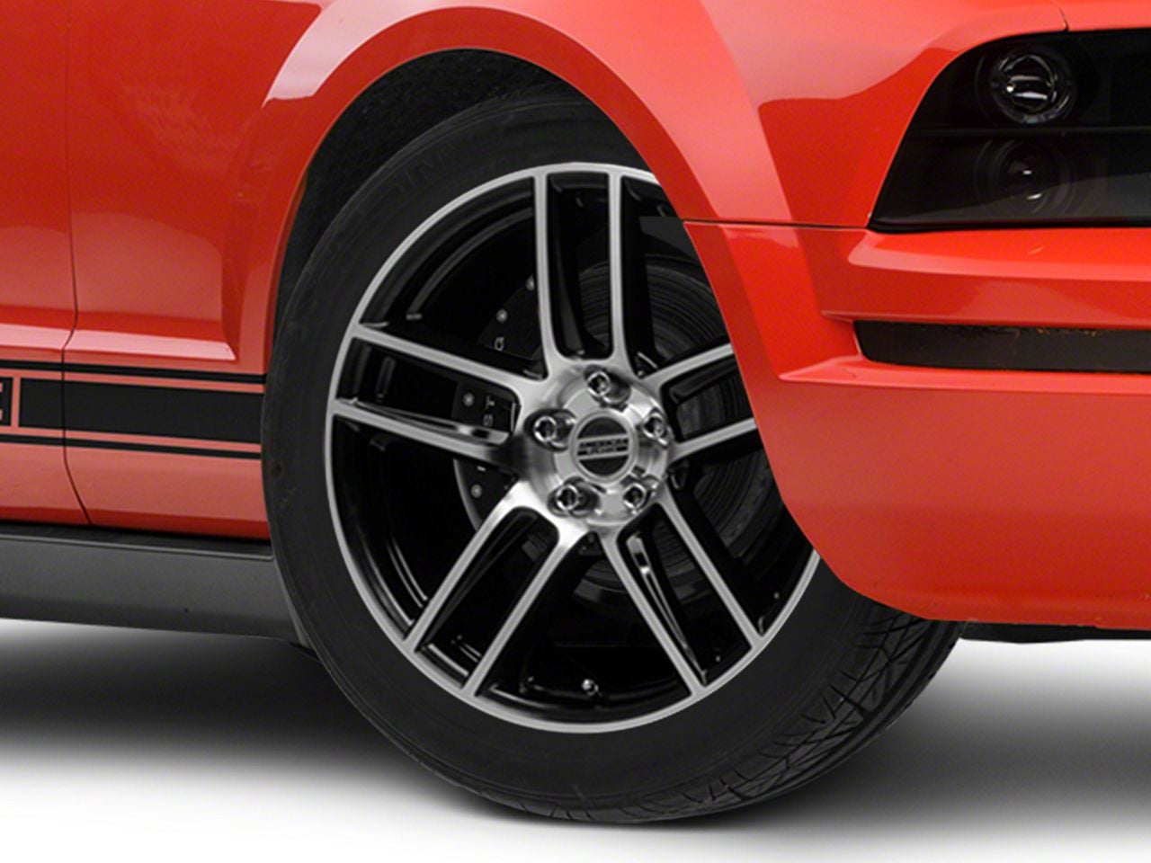 Application. This American Muscle Wheels Laguna Seca Style Gloss Black Machined Wheel; 19x9 with a backspace of 6.654 Inch, 169.1mm and bolt pattern of 5 x 114.3mm (5 x 4.5-Inch) ensures impeccable alignment and unmatched driving stability. Specifically designed for 2005-2009 Mustang models, each wheel is sold individually.