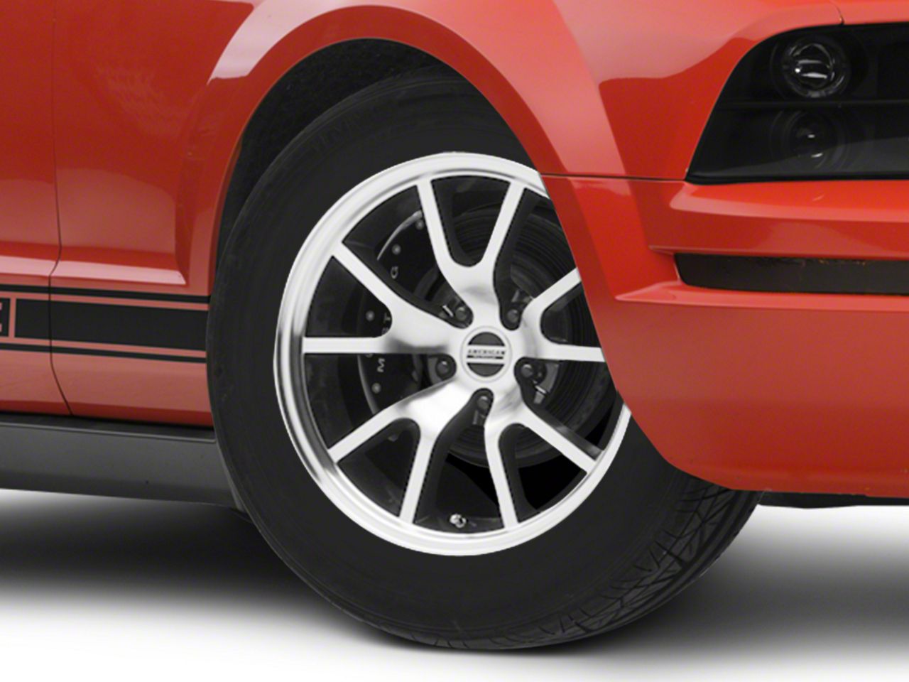 Application. This American Muscle Wheels FR500 Style Gloss Black Machined Wheel; 17x9 with a backspace of 6.182 Inch, 157.1mm and bolt pattern of 5 x 114.3mm (5 x 4.5-Inch) ensures impeccable alignment and unmatched driving stability. Specifically designed for 2005-2009 Mustang GT, V6 models, each wheel is sold individually.