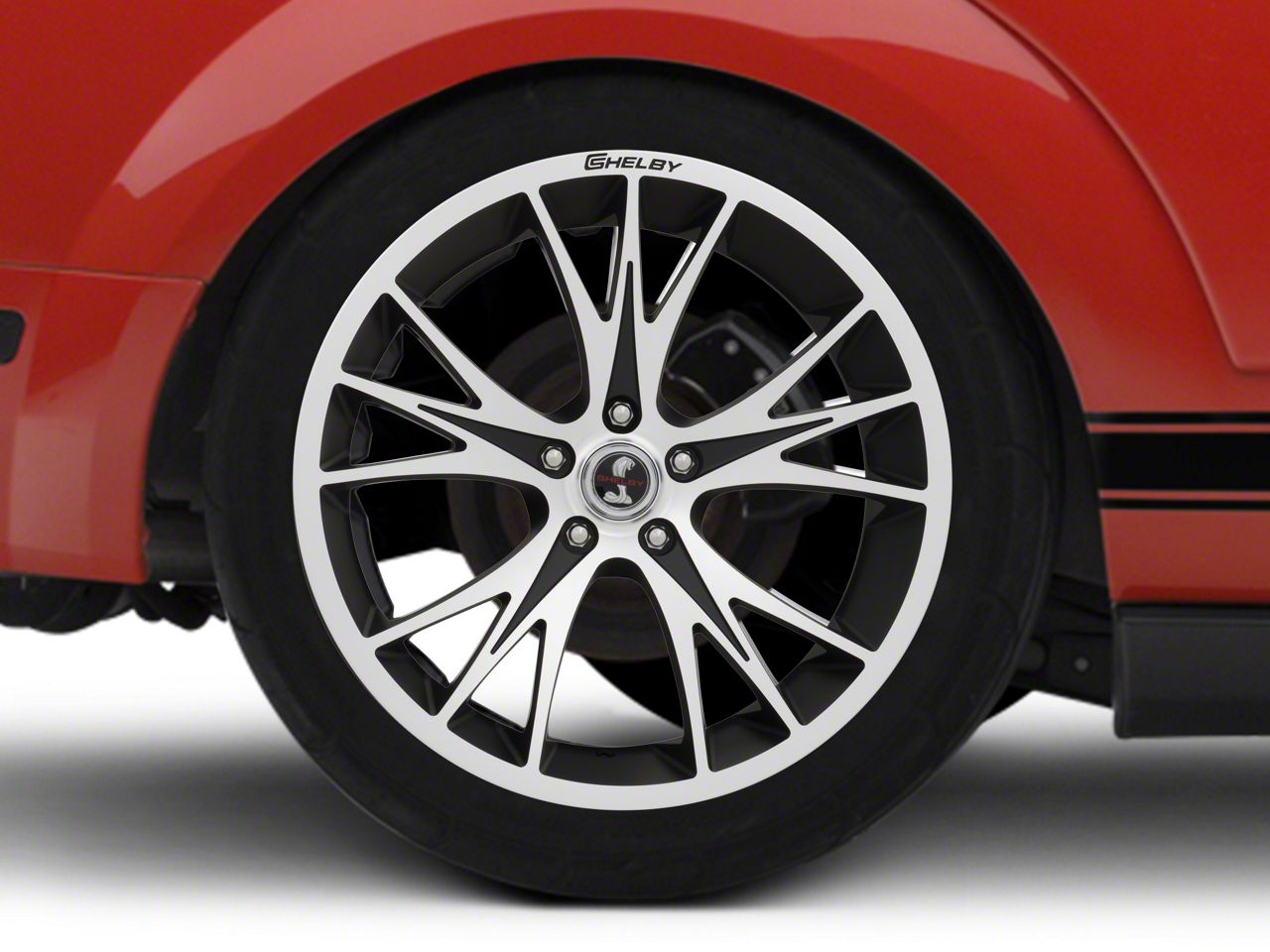 Shelby CS1 Gloss Black Machined Wheel; Rear Only; 20x11. The Shelby CS1 Gloss Black Machined Wheel offers a striking balance of style and refinement. Its unique design accentuates the vehicle's aesthetic, while the premium construction underscores its robust nature. This wheel is a perfect choice for those seeking both elegance and a strong visual statement.